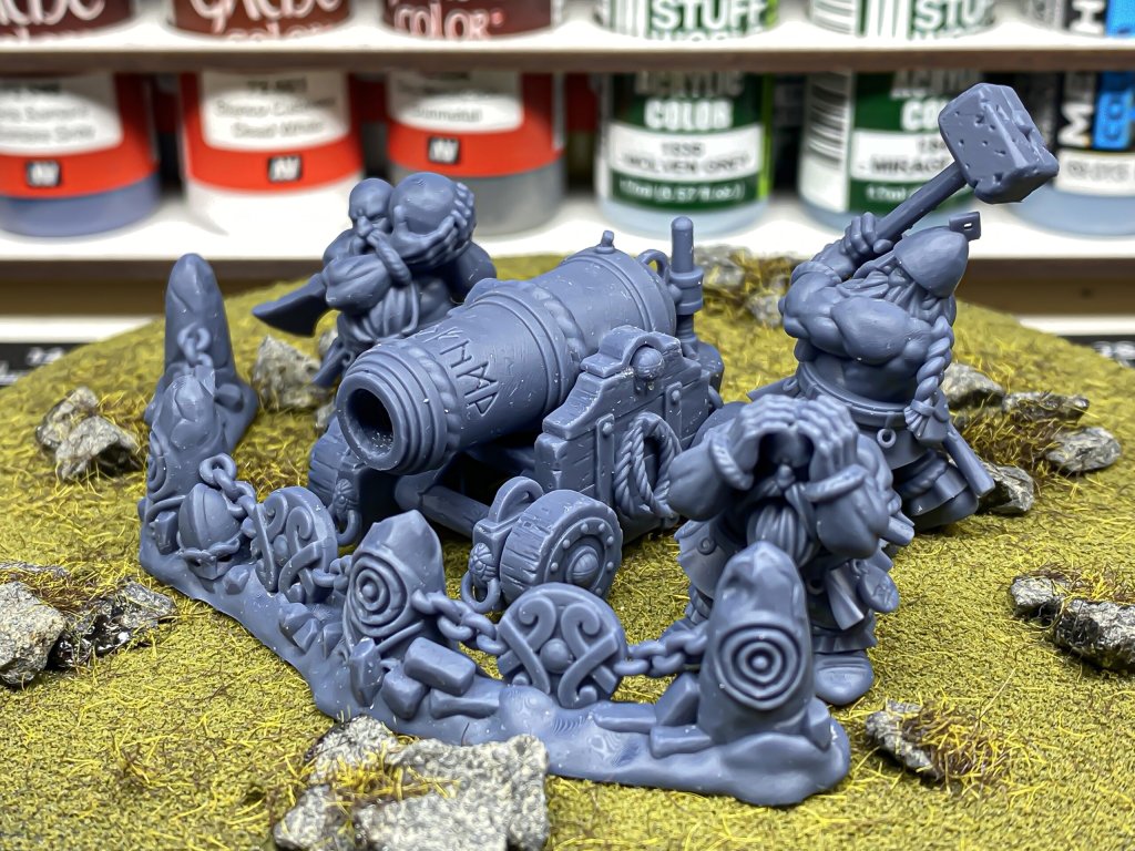 - 1x Dwarf Cannon, 1x barricade, 3x figurka crew, 1x pařez