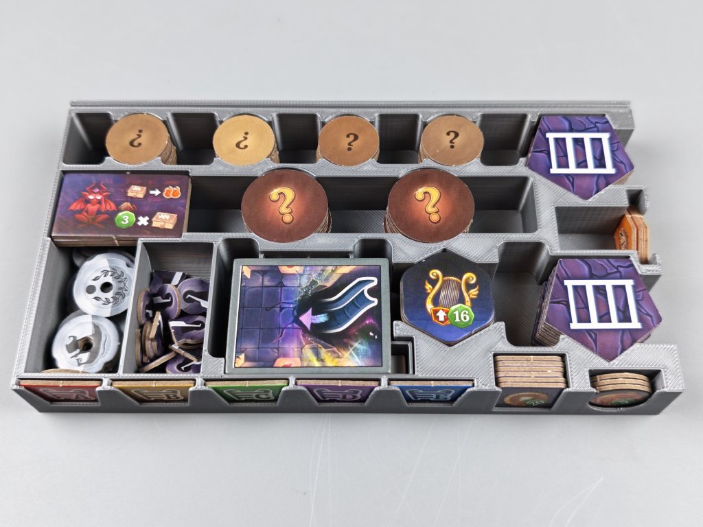 Kompatibilní insert s hrou: Gaia Project: Galaxie Terra MysticaInsert je vytištěný pomocí 3D tiskárny, je navržen tak, aby všechny komponenty skvěle zapadly, ale aby se i dobře vyndavaly. Navíc je tento insert navržen i pro obalené karty. Skladování hry je možné i vertikálně. Zrychluje přípravu, sklízení (o několik minut) ale i průběh hry a umožňuje bezpečnější skladování herních komponent.