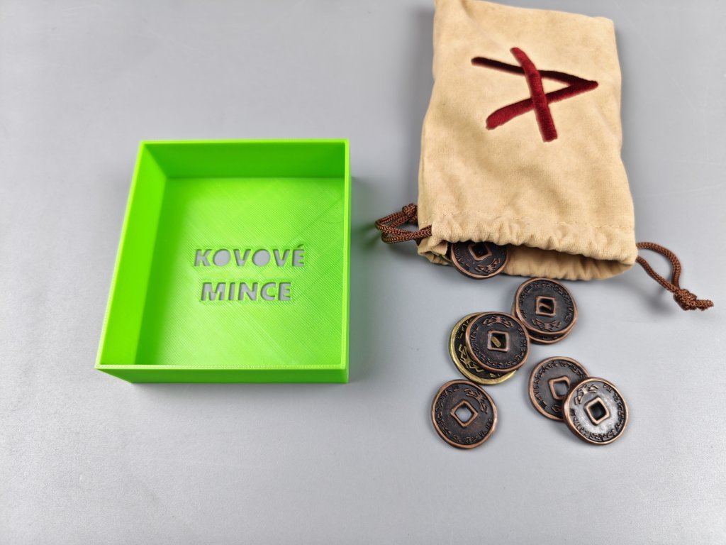- 1x krabička na sáček a kovové mince
