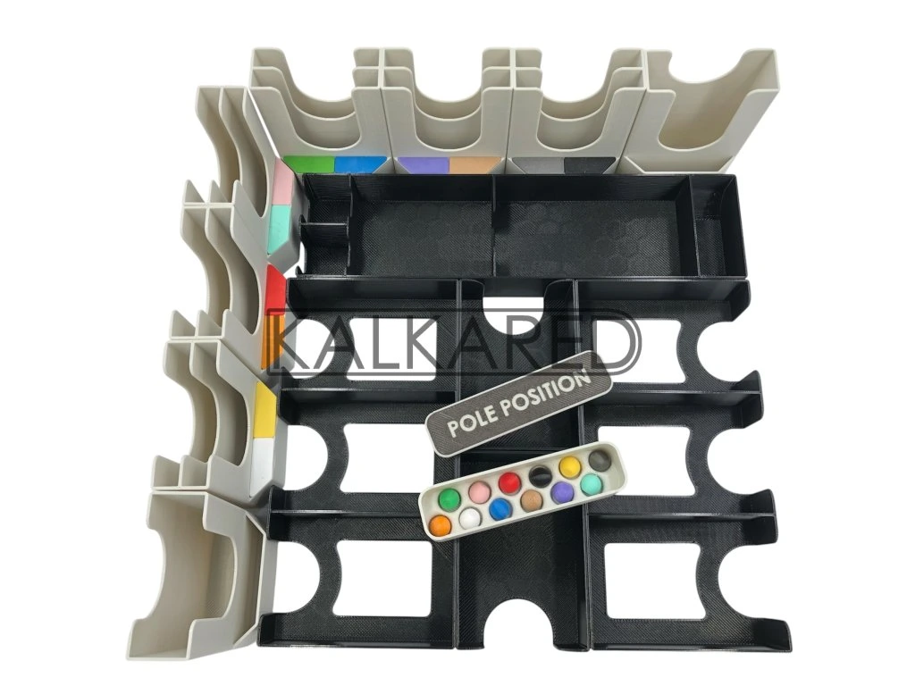 Součástí insertu je pomůcka, která určí pořadí vozidel na startovní čáře. Stačí vhodit kuličky, zamíchat a otevřít víčko