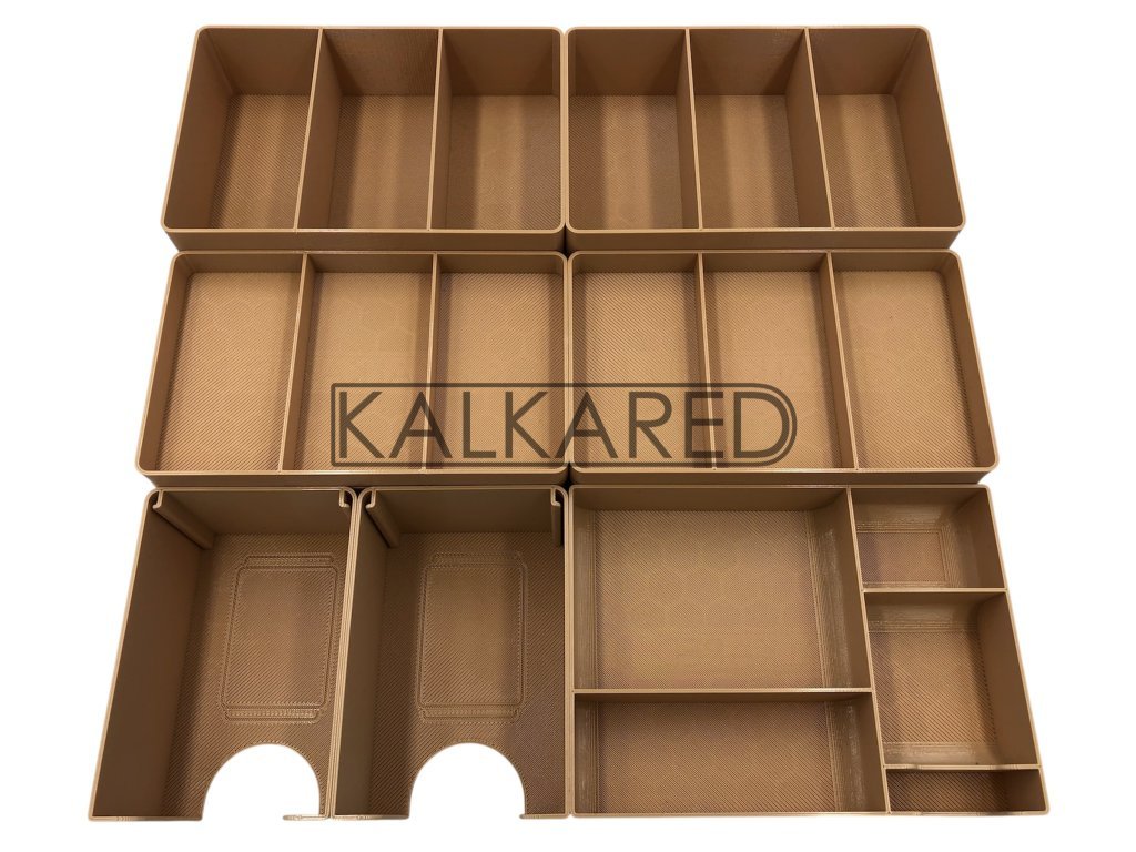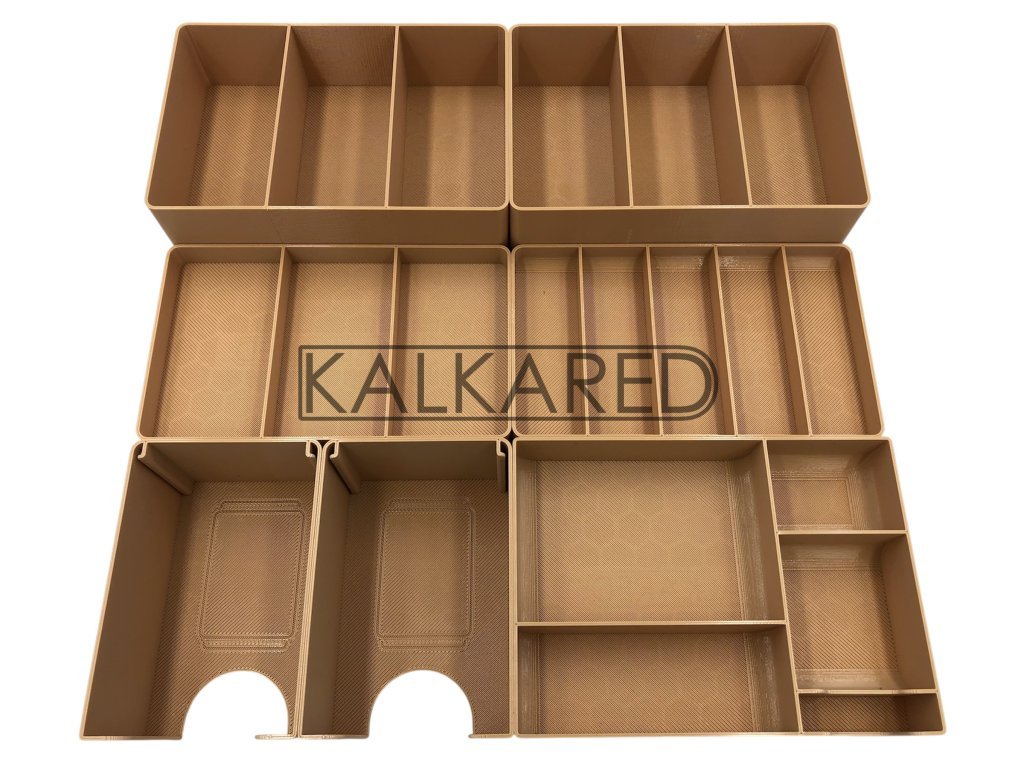 - Insert se skládá z celkem 24 kusů menších krabiček a pořadačů.