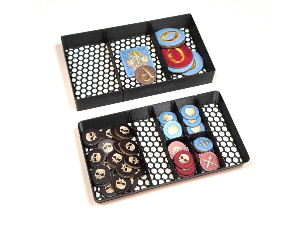 - Dvě misky na komponenty jsou také předimenzované pro budoucí žetony z dalšího rozšíření.