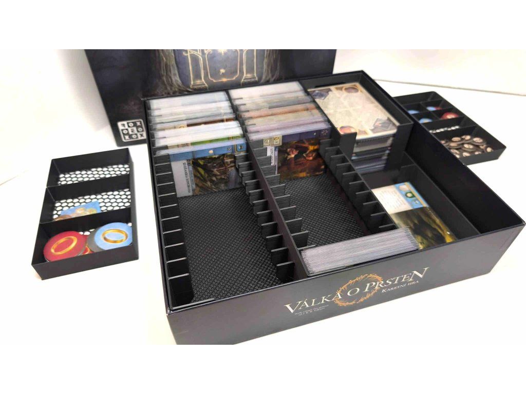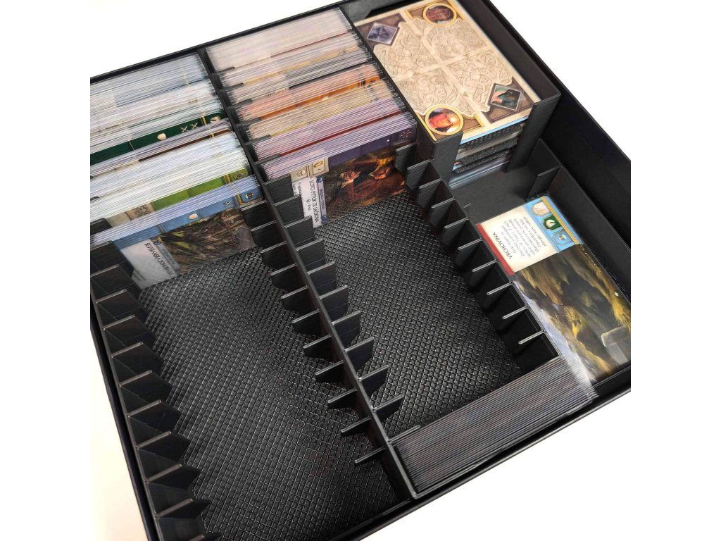 - Je zde dostatek drážek na karty jak ze základní hry tak třech dalších rozšíření.