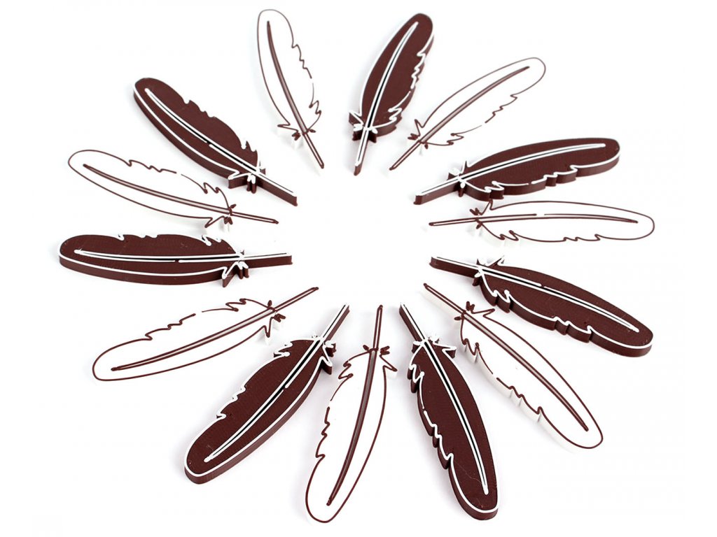 Žetony ve tvaru pírka v bílé nebo hnědé variantě do hry Na křídlech. Slouží jako označení použité karty s růžovým efektem.