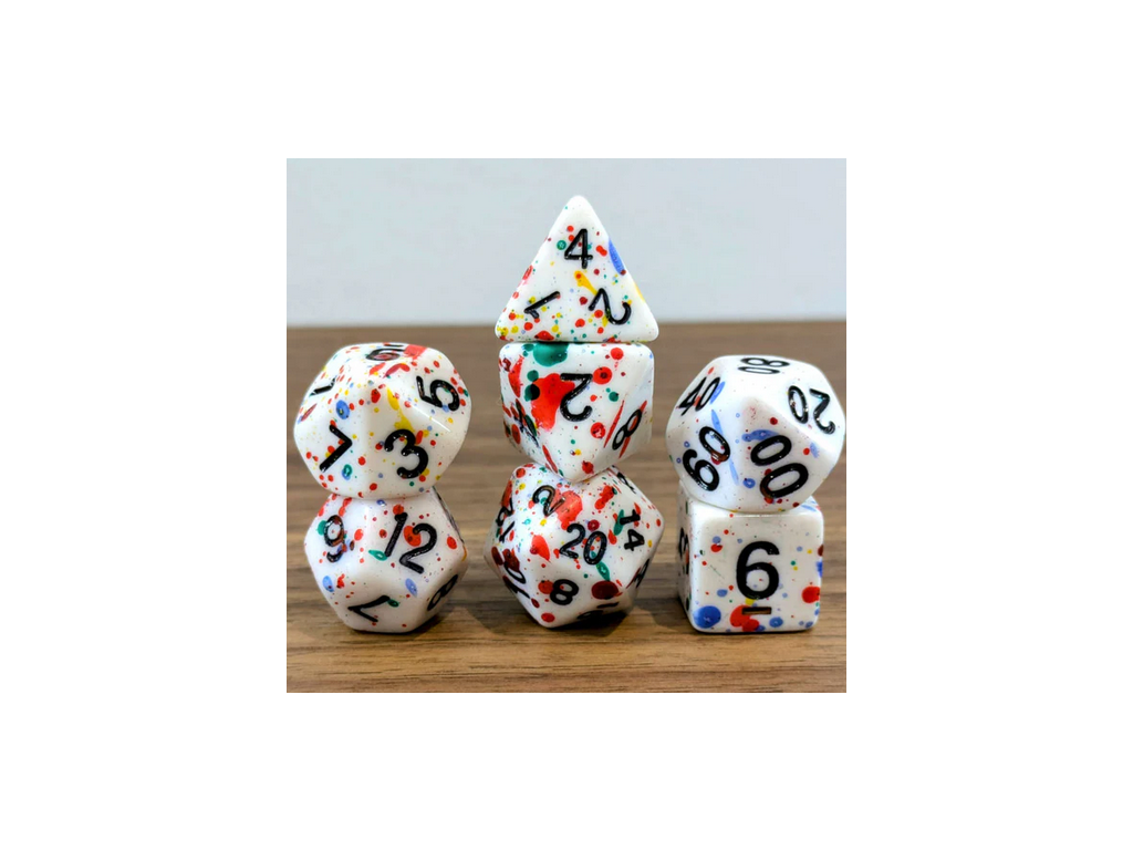 Sada 7 barevných kostek pro RPG (cákance)
