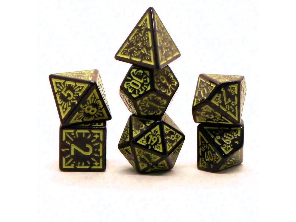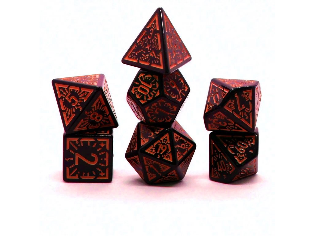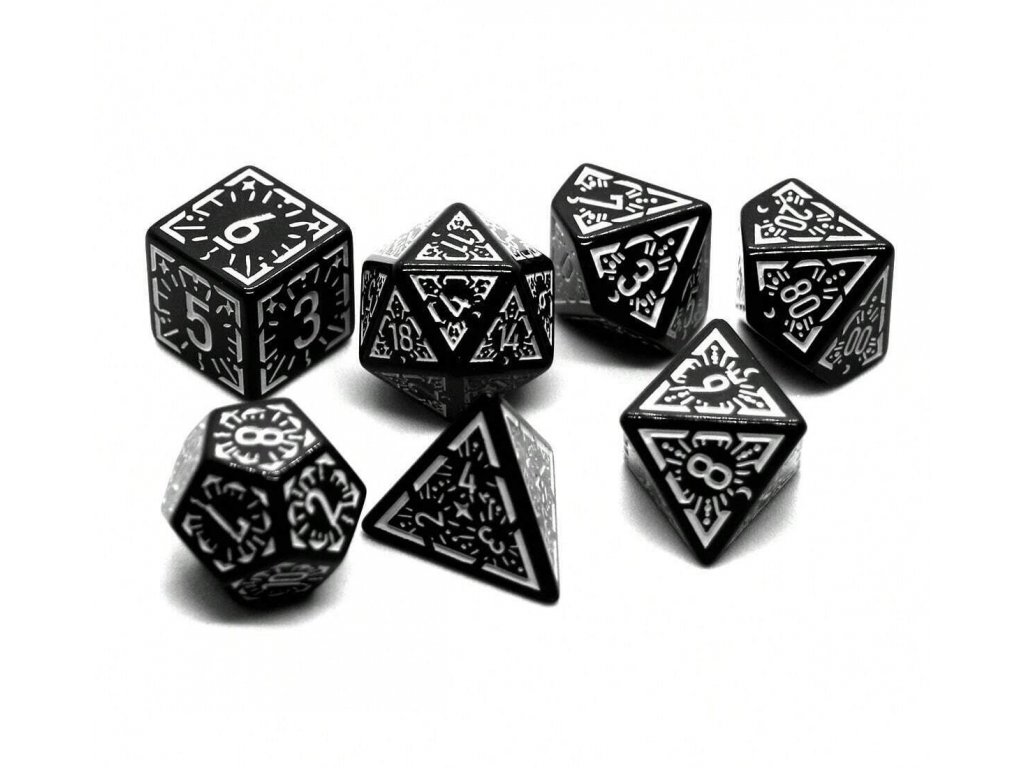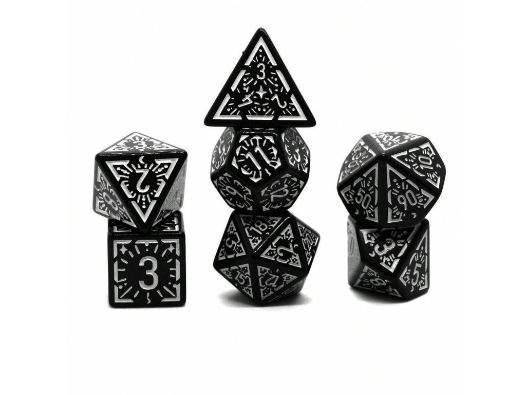 Souprava kostek pro RPG. 7 kusů kostek v balení. V různých barevných variantách s motivem fantasy ornamentů.