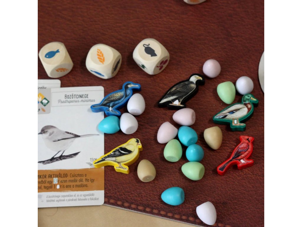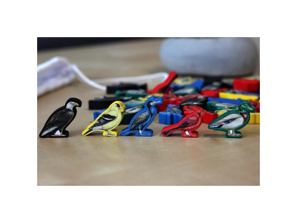 Dřevěné žetony se pyšní hladkým a leštěným povrchem, který zvyšuje hmatový požitek ze hry. Sada doplňků také obsahuje samolepky, které perfektně pasují na žetony ve tvaru ptáků. Samolepky obsahují detailní a živé ilustrace různých druhů ptáků, které jsou vizuálně atraktivní a pomáhají hráčům identifikovat jejich individuální žetony během hry.