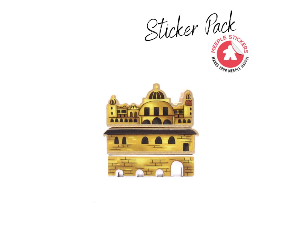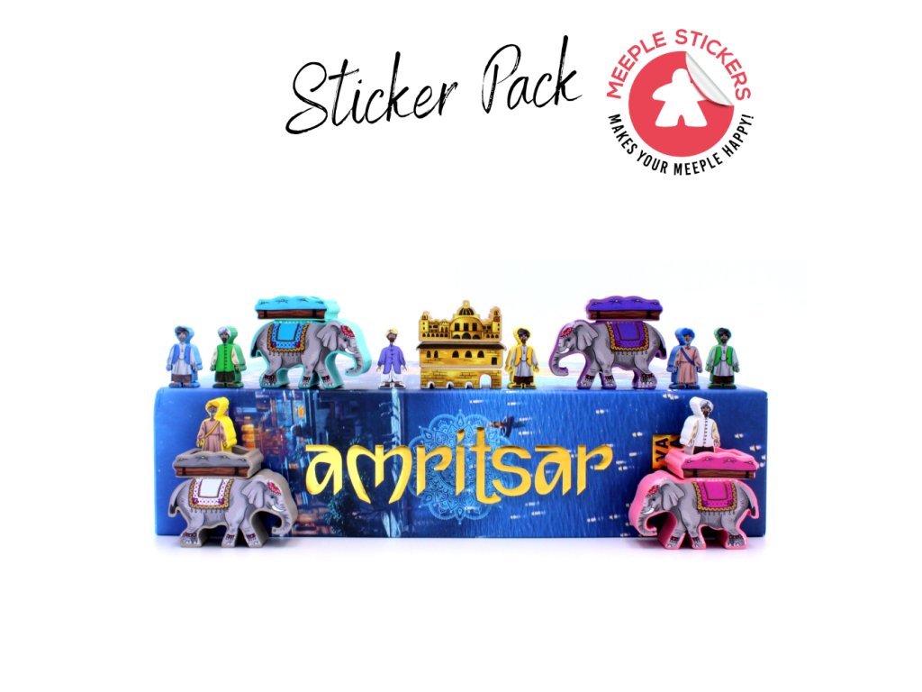 „Meeplestickers“ navrhlo toto neoficiální rozšíření od třetí strany s péčí a přesností. Ačkoli nejsme spojeni s původními tvůrci hry, naše samolepky krásně doplňují vaši hru Amritsar. Zlepšují jak vzhled, tak i zážitek z hraní.