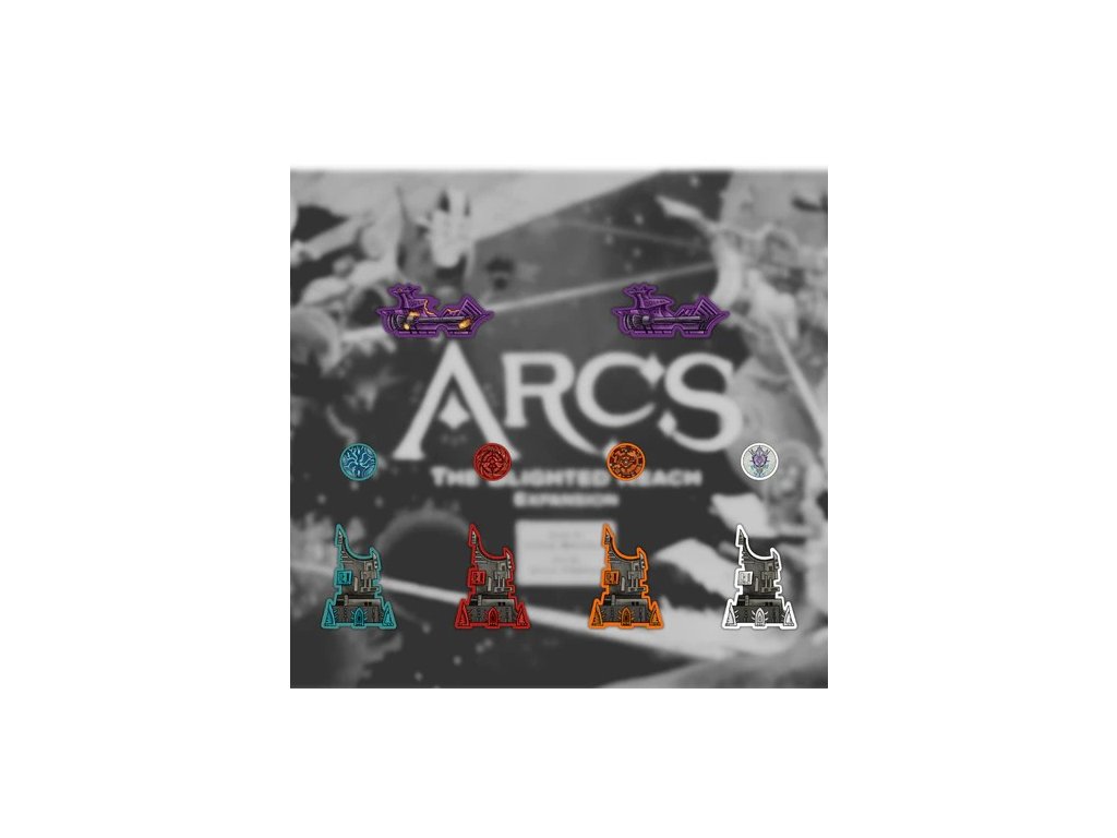 Desková hra Arcs: The Blighted Reach ani meeplové z fotografií nejsou součástí balení.