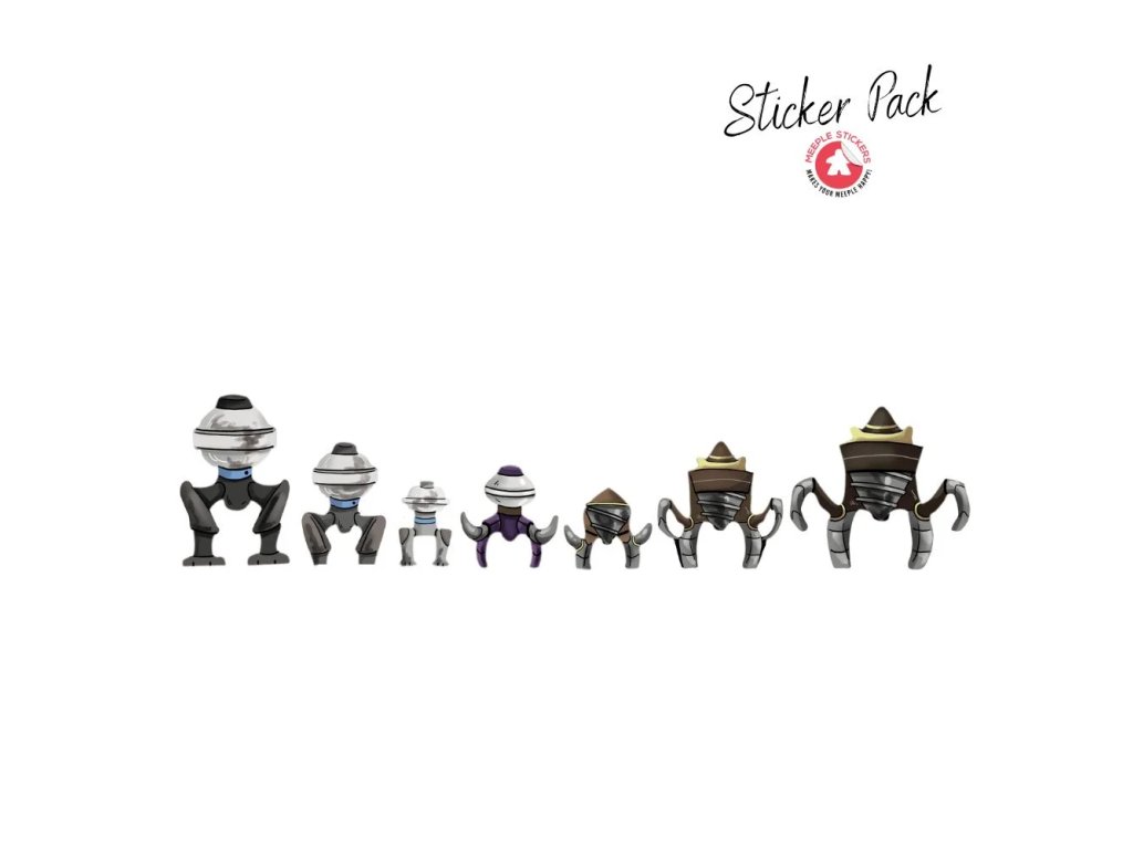 Proměňte všechny figurky (meeples) ze základní hry a rozšíření na vizuálně působivé postavy. Samolepky jsou navíc oboustranné, takže vaši inženýři, stroje a zdroje vypadají fantasticky z každého úhlu. Díky tomu bude každá herní relace organizovanější, zábavnější a esteticky příjemnější.
