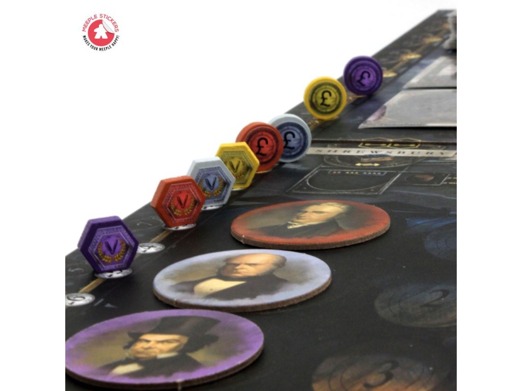 Brass: Birmingham je hra o strategii, průmyslovém růstu a ekonomické převaze. Naše samolepky vám pomohou okamžitě rozpoznat klíčové herní figurky, díky čemuž bude hra plynulejší a vizuálně přitažlivější.