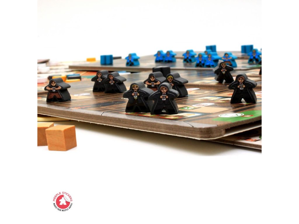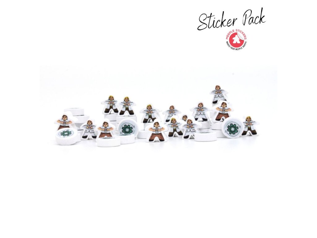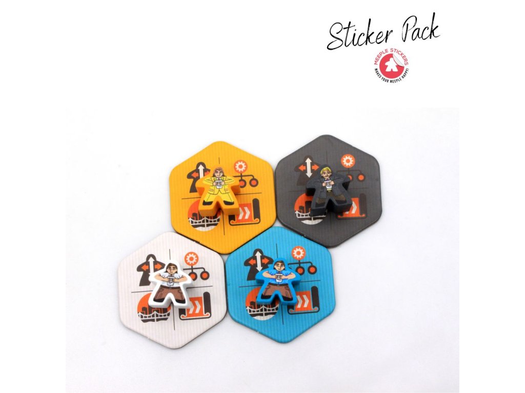Toto balení obsahuje samolepky pro obě strany každého meepla. Jedná se o neoficiální rozšíření od třetí strany, které vytvořila a vyrobila společnost MeepleStickers. Všechny názvy značek, názvy produktů a ochranné známky jsou majetkem jejich příslušných vlastníků a nejsou spojeny se společností MeepleStickers.