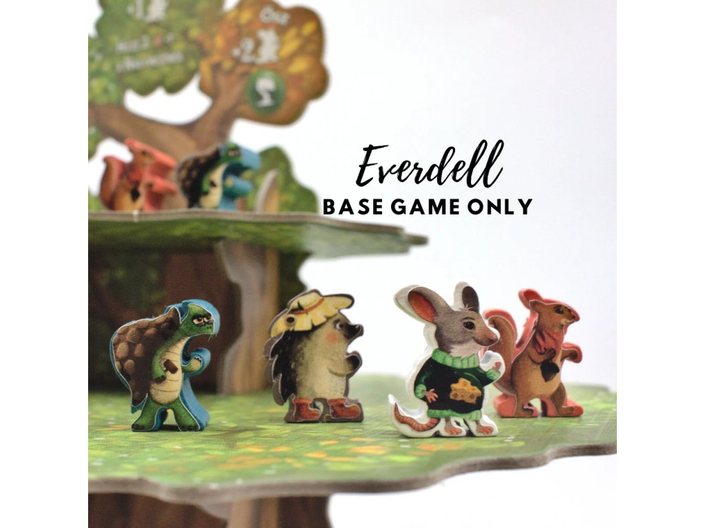 Everdell je svěží worker placement hra, která vyniká detailně propracovaným fantasy světem a dechberoucími ilustracemi. Hráči budují město obydlené lesními zvířaty a různými stavbami. Everdell má snadná pravidla, přesto poskytuje uspokojivou herní hloubku a téměř nekonečnou znovuhratelnost.