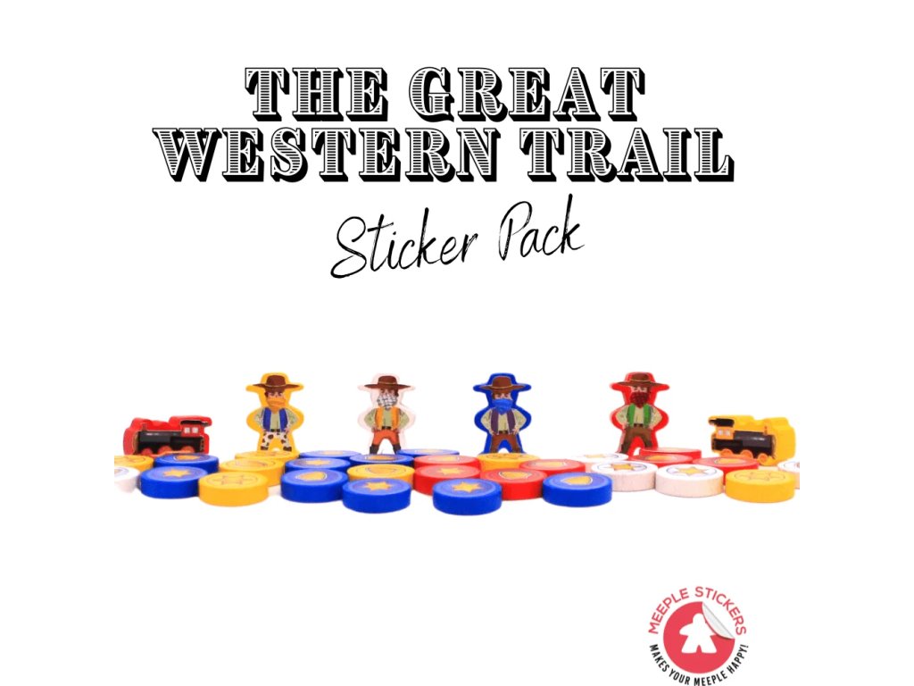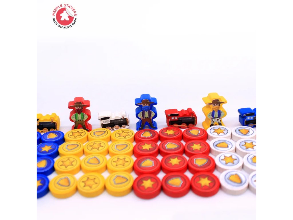 Upozorňujeme, že se jedná o produkt třetí strany od Meeplestickers, který není oficiálně spojen s tvůrci The Great Western Trail. Vzhledem k malým částem není vhodný pro děti do 36 měsíců.