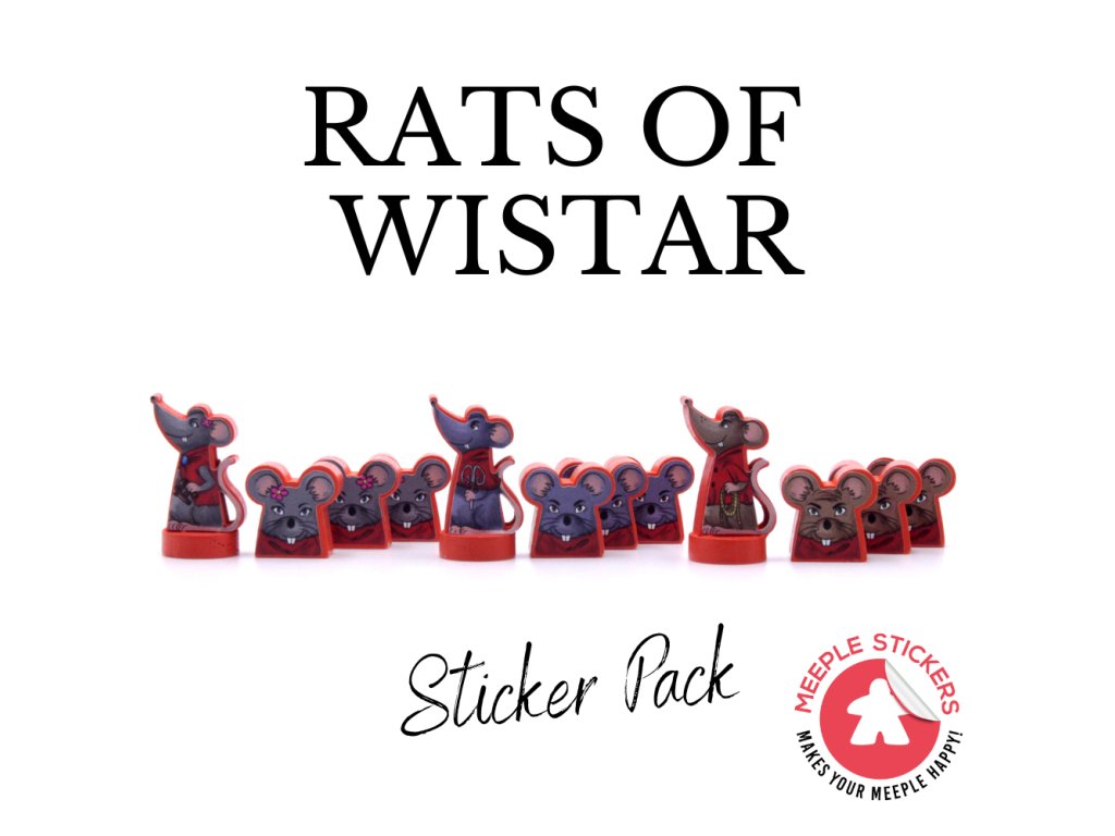 Ve hře Krysy z Wistaru využijete svou vynalézavost k útěku z instituce Wistar tím, že se budete pohybovat v bludišti budovy a okolních polí. Vylepšete si své herní dobrodružství s vysoce kvalitními samolepkami! Ozdobte své figurky a dejte všem svým krysím přátelům jejich vlastní jedinečnou osobnost. Samolepky jsou odolné, snadno se odlepují a jsou navrženy pro hodiny zábavy.