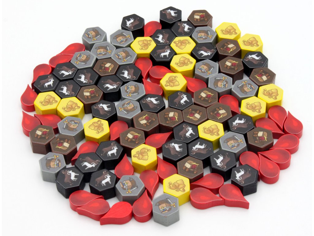 Toto je neoficiální produkt třetí strany vytvořený společností Meeplestickers. Není spojen s původním vydavatelem hry Nájezdníci ze Skýtie. Všechny názvy značek a ochranné známky patří jejich příslušným majitelům.