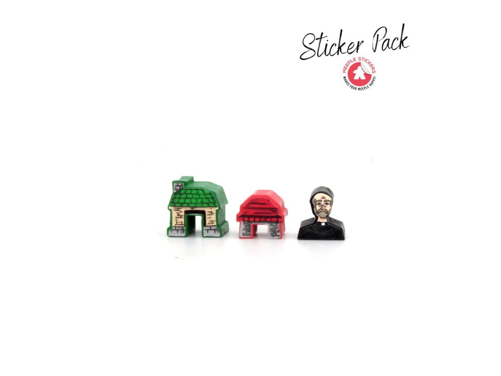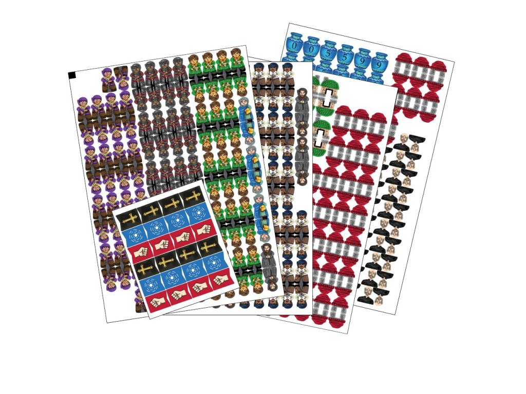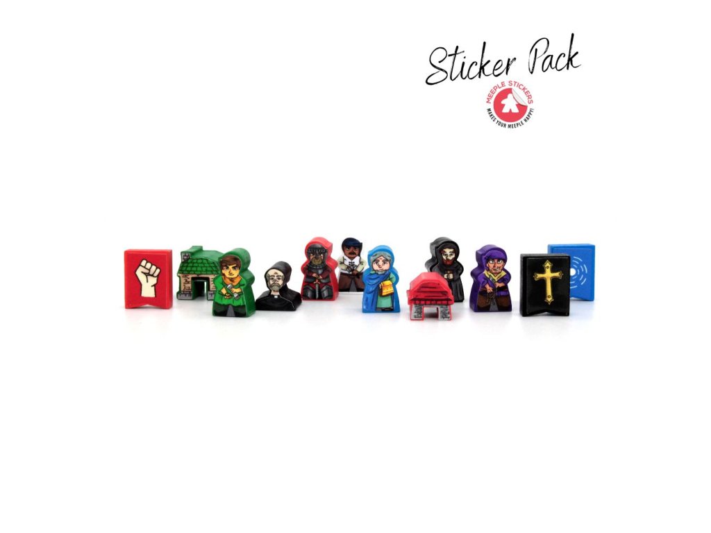 Samolepky na dřevěné figurky (meeplíky) z rozšíření Architekti Západního království: Rozkvět řemesel. Objevte živý svět hry Architekti Západního království: Rozkvět řemesel díky našemu balíčku vysoce kvalitních samolepek na míru. Tovariši a mistři řemeslníci zazáří na hracím stole, získají barevné osobnosti a každá herní relace bude ještě více pohlcující.