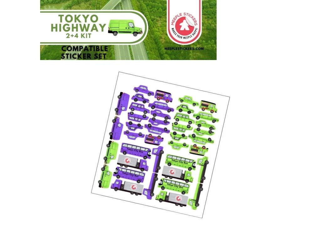 Přizpůsobte si svou hru Tokyo Highway 2+4 Kit pomocí vysoce kvalitních samolepek na míru! Toto rozšíření vylepšuje vaši strategii budování silnic a nyní mohou vaše vozidla ještě více vyniknout. Místo obyčejných herních figurek je proměňte v barevná, detailní auta, která hru oživí.