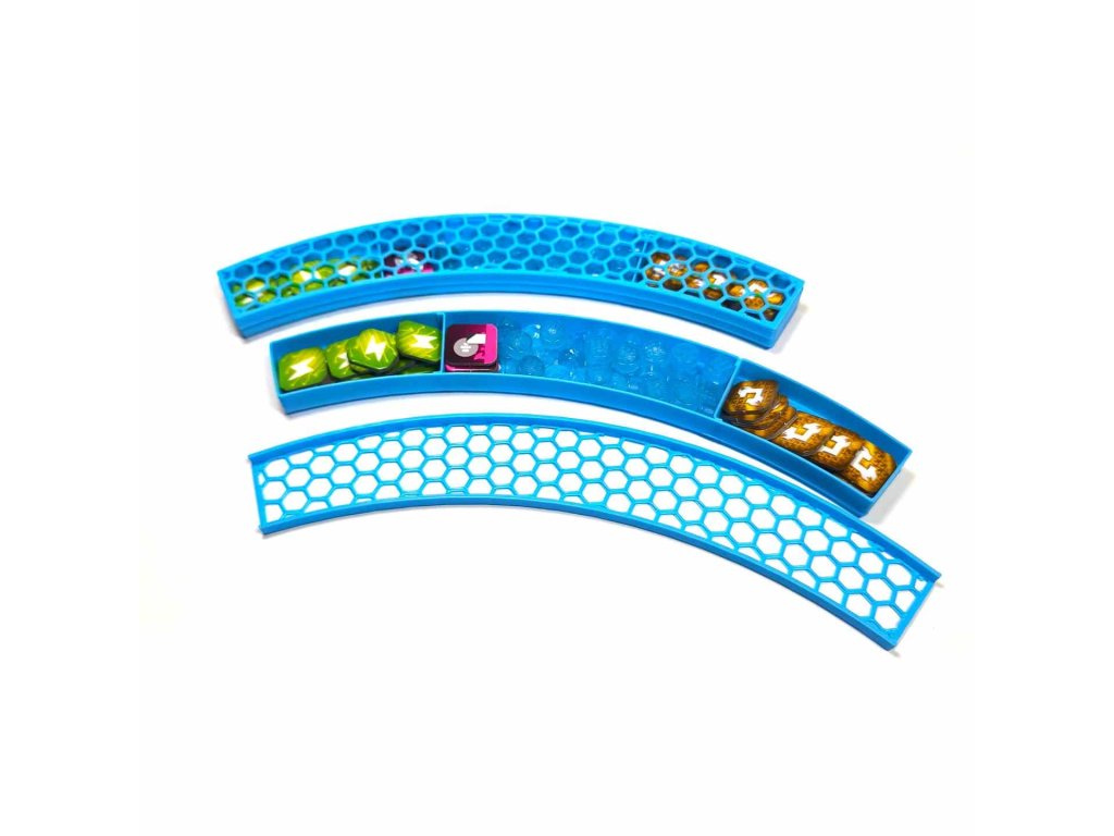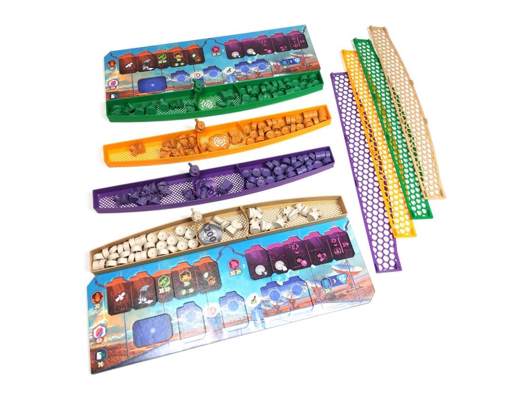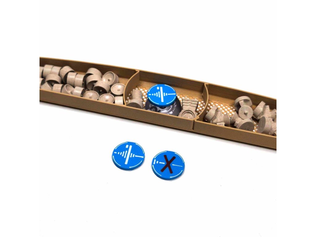 - Misky hráčů jsou v barvách, obsahují hráčské komponenty. Misku lze vyložit nad nebo pod hráčskou desku.