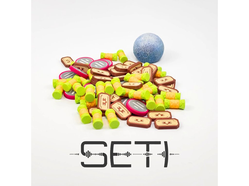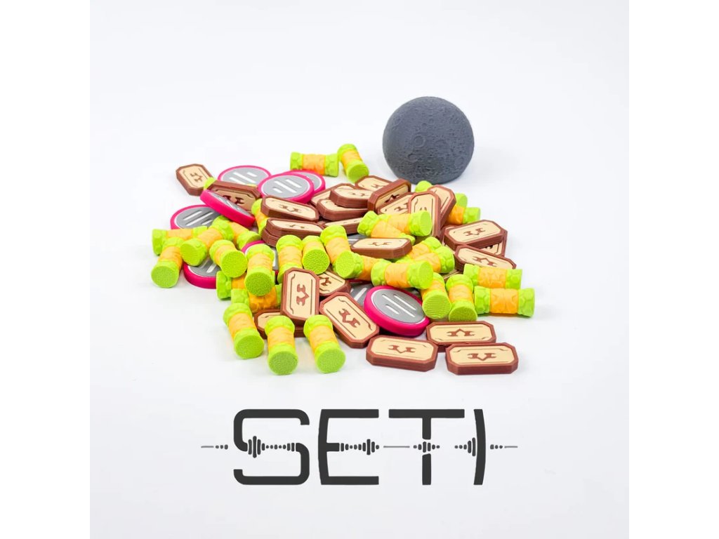 Vylepši si herní zážitek ze SETI: Pátrání po mimozemské inteligenci pomocí kompletní sady prémiových žetonů surovin, které nahrazují základní kartonové komponenty. Upgradované žetony zajišťují lepší přehlednost na stole, příjemnější manipulaci a silnější tematický dojem odpovídající vědeckému a objevovatelskému charakteru hry.