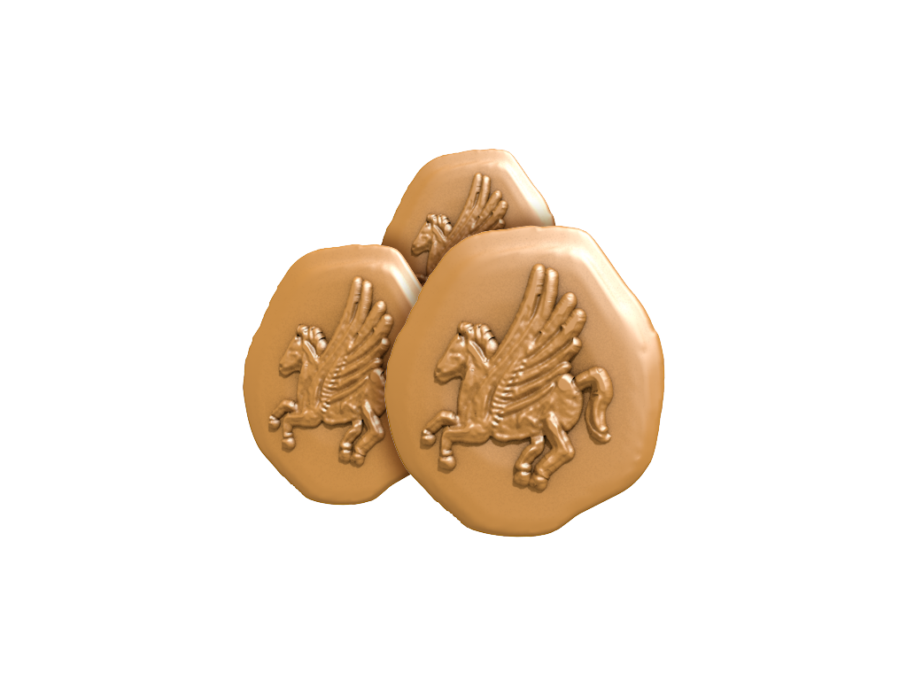 Tyto mince, vyrobené pro hmatový zážitek a působivý vzhled na stole, dodávají větší realismus a ponoření do hry při každém obchodu, platbě a odměně, kterou získáte při budování Cadmea a povyšování svých hoplitů k velikosti.