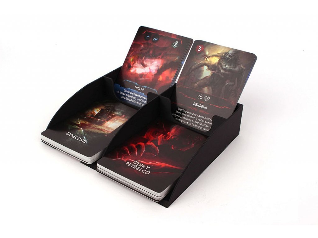 Zásobník na 2 dobírací a 2 odkládací balíčky karet. Ušetří místo a obalené karty se vám nebudou rozjíždět po stole.