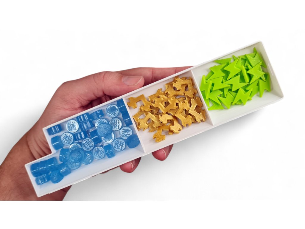 A set of 12 glass beads for the Delta board game, replacing the cardboard card markers in the retail version.