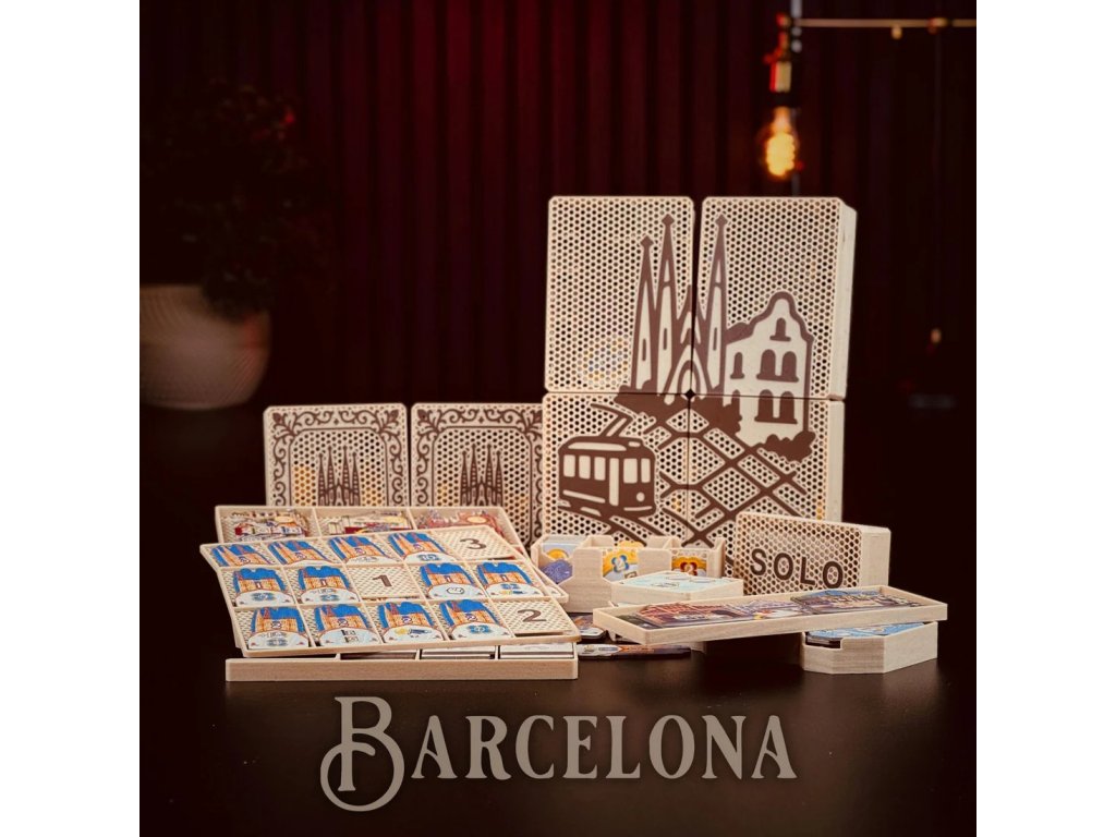 Enhance your Barcelona game with an elegant insert that keeps the city districts, trams, and the famous Sagrada perfectly organized and ready to play.