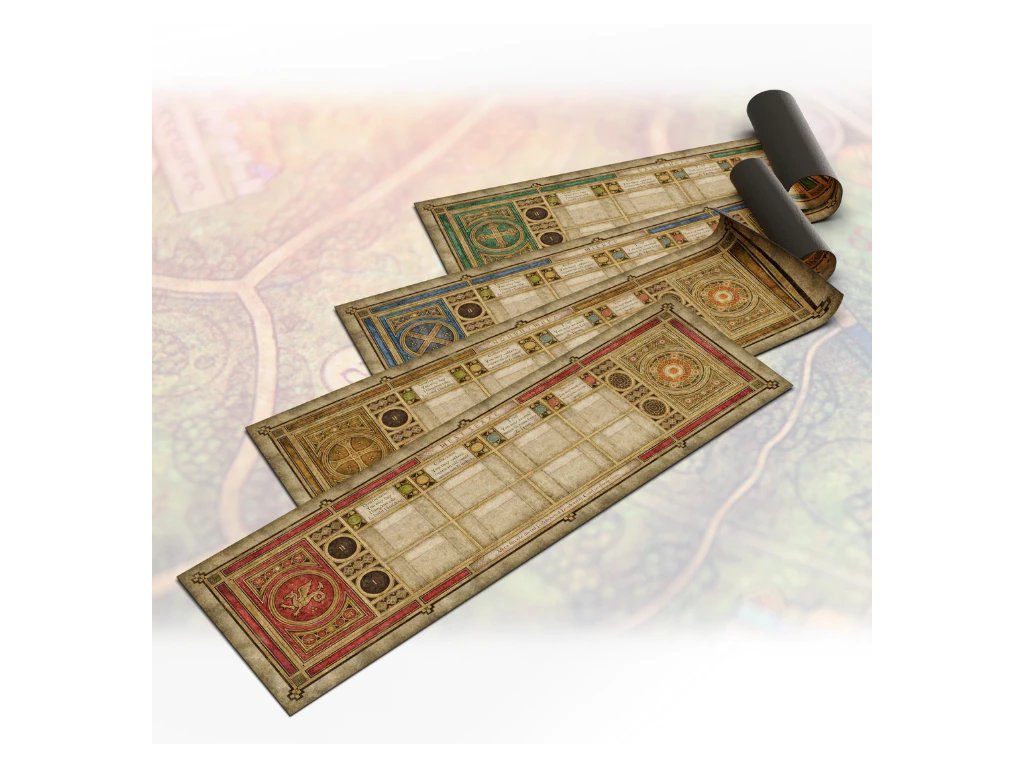 Five cardholders in players' colors designed to hold up to 8 Lordship and 2 Chronicle cards each.