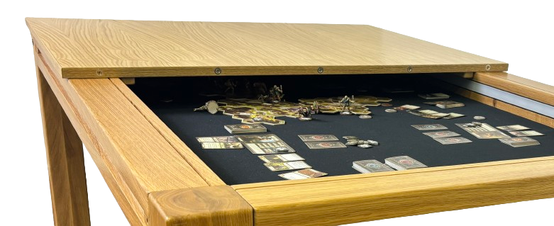 - Solid wood: a luxury option of a 4 cm thick solid wood board. A gaming table with this board will become a dominant feature in your home. The solid board can also be supplemented with a spill guard to ensure that your game spread out inside the table is always safe.