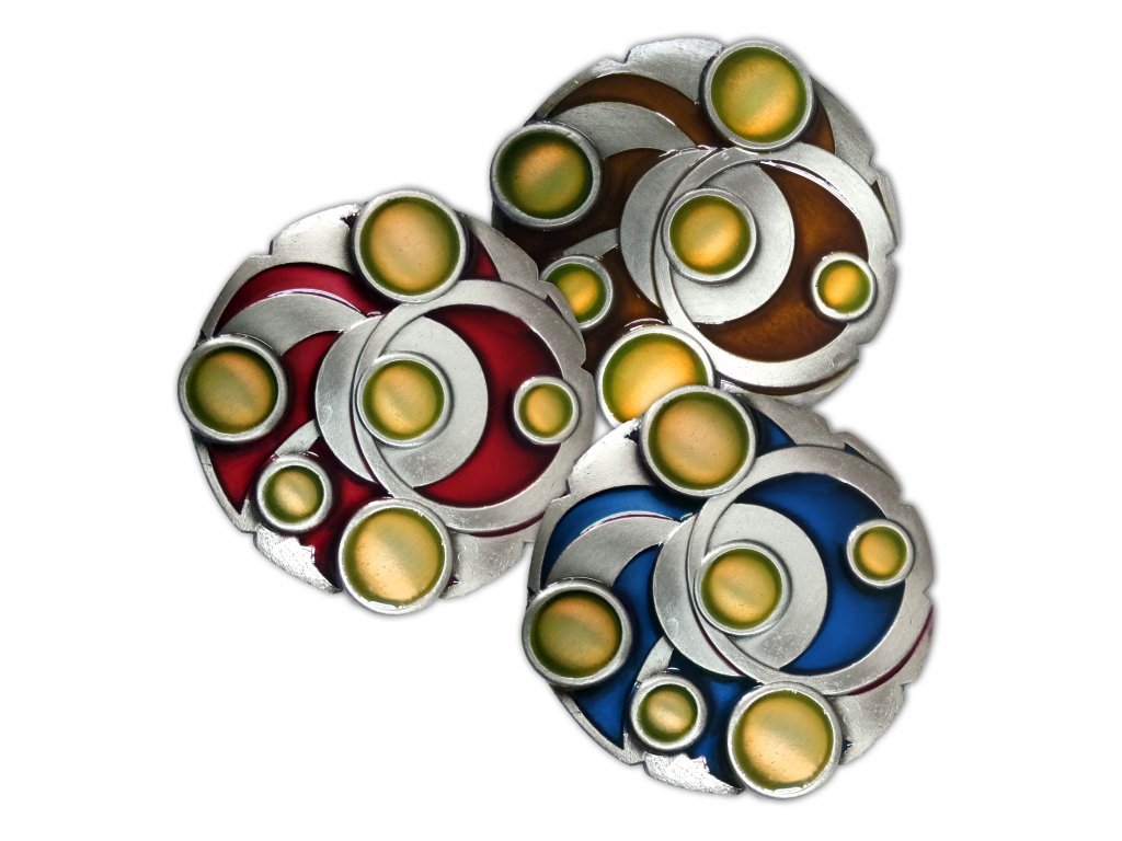 Sada obsahuje celkem 3 kovové mincí tří barev. Mince mají železné jádro a povrchovou úpravu zašlého stříbra. Některá místa jsou vylita transparentními barvami na kov. Průměr mince 5 cm, tloušťka 5 mm. Jedna mince/klíč váží 40 g.