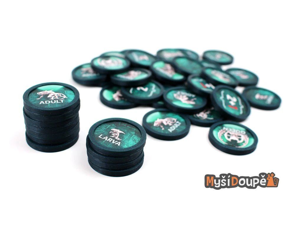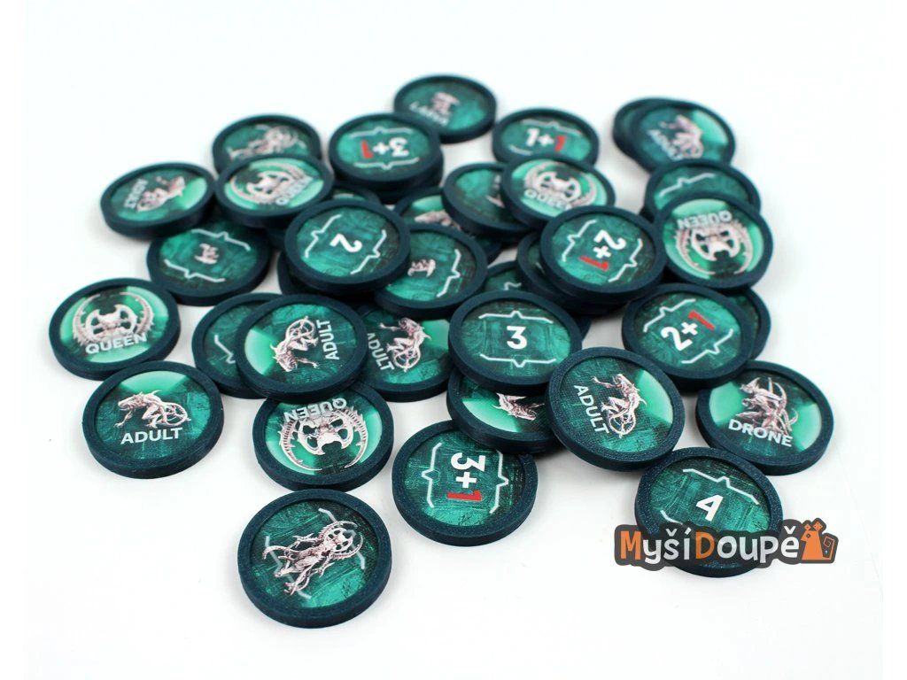 Looking for a way to protect your enemy tokens? Our snap-on plastic covers are designed for the alien tokens from the base game.