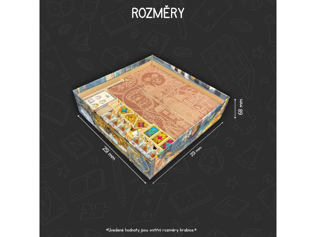 For centuries, the Prague Astronomical Clock has enchanted people with its precision, rhythm, and symbolism of time. This insert brings the same philosophy to the world of the board game Orloj – it brings order and fluidity to every move. Everything has its place, nothing disturbs your concentration, and the overall impression supports the atmosphere of a game inspired by one of the most famous technical wonders of the world.