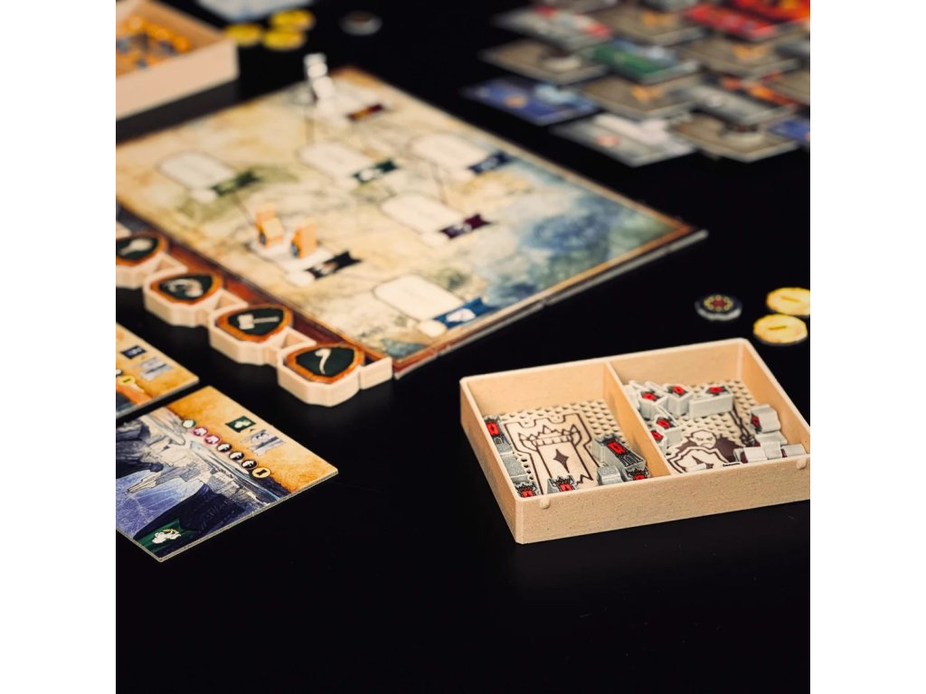 Organizér z vysoce kvalitní dřevovláknité desky (HDF) je dokonalým doplňkem pro uspořádání velkého množství komponentů. Kompatibilní s: Gloomhaven: Jaws of the Lion