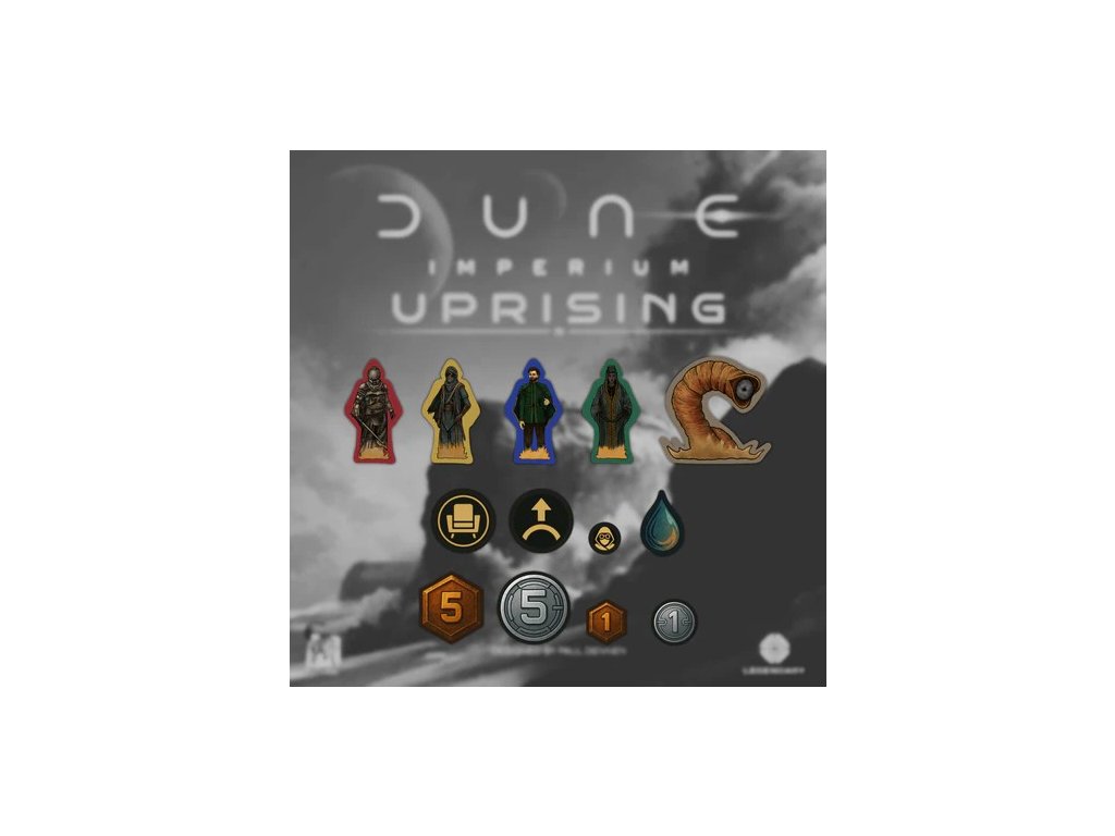 The Dune: Imperium – Uprising board game and meeples from the photos are not included in the package.