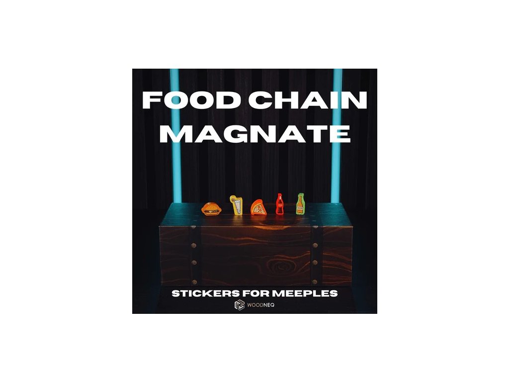 The Food Chain Magnate board game and meeples from the photos are not included in the package.