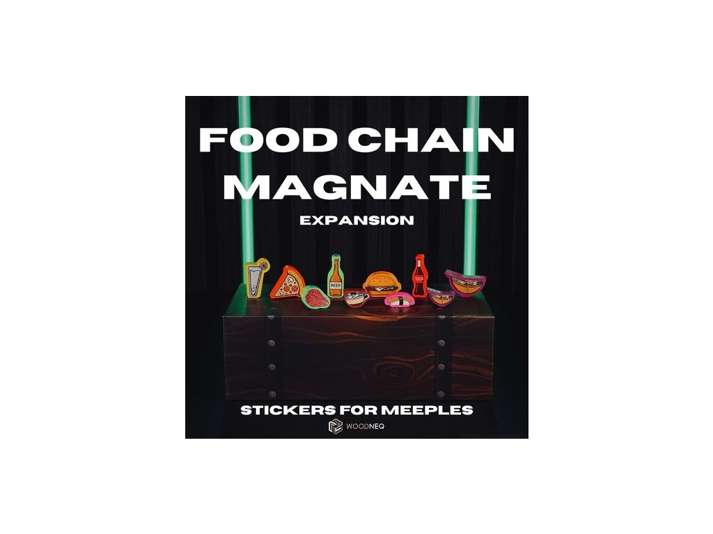 The Food Chain Magnate board game and meeples from the photos are not included in the package.