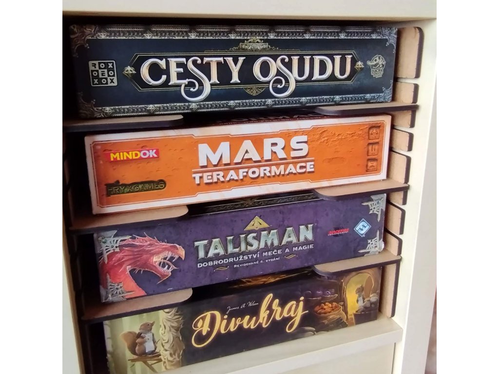 The insert is compatible with the Ikea Kallax system. It is used for storing games horizontally. The boxes do not lie on top of each other, so you can easily take out your favorite board game at any time.