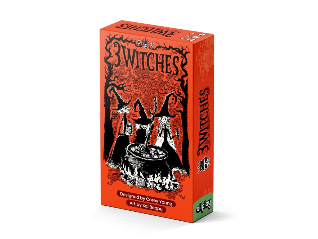 3 Witches is a must-follow, trick-taking game with no trump suit. At the start of each round, players bid on how many tricks they can win (out of five). The highest bidder becomes the Lead Witch, and their opponents play together on a team as Lesser Witches.