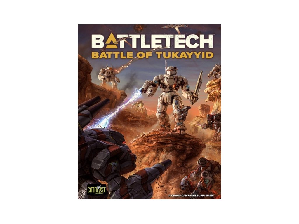 The Battle of Tukayyid brings players back to this gargantuan conflict, allowing them to relive one of BattleTech's most pivotal moments. It builds off of the Chaos Campaign: Succession Wars framework to unleash a massive experience players will enjoy across dozens of games. Each of the seven campaigns within includes the following: a short fiction entry and write-up of the battle, including a map of the regions; the specific Combatants involved, along with insignia; and details to allow players to play out each campaign on their tabletop. Finally, a technical readout section showcases 'Mech variants that first appeared during this conflict.