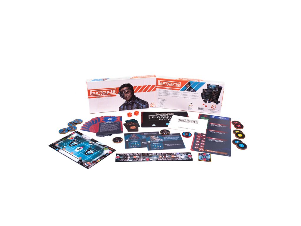 This expansion adds 3 new neoprene rooms, 1 thread card, 8 mission cards, 1 CEO chip, 2 captain cards with 2 captain chips, 6 guard chips, 3 equipment cards, 2 equipment dice, 2 mod cards, 1 floorplan booklet, 1 reference card.