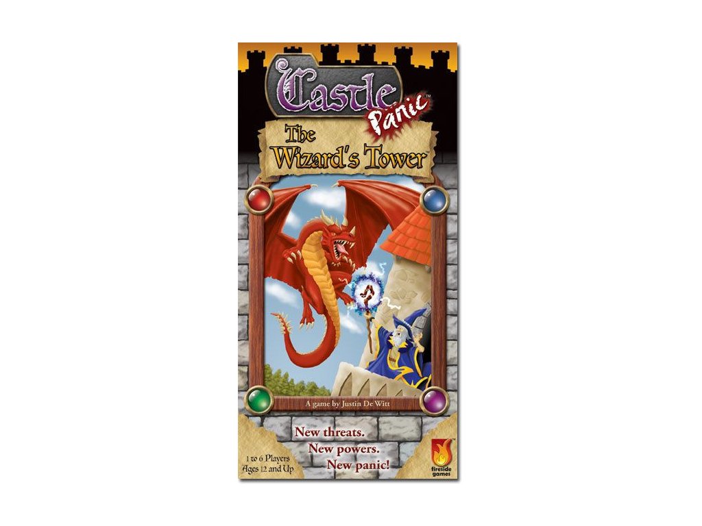 The Wizard's Tower is an expansion to the board game Castle Panic. It is not a stand-alone game and requires Castle Panic to play. The Wizard's Tower is a cooperative board game for 1 to 6 players ages 12 and up.