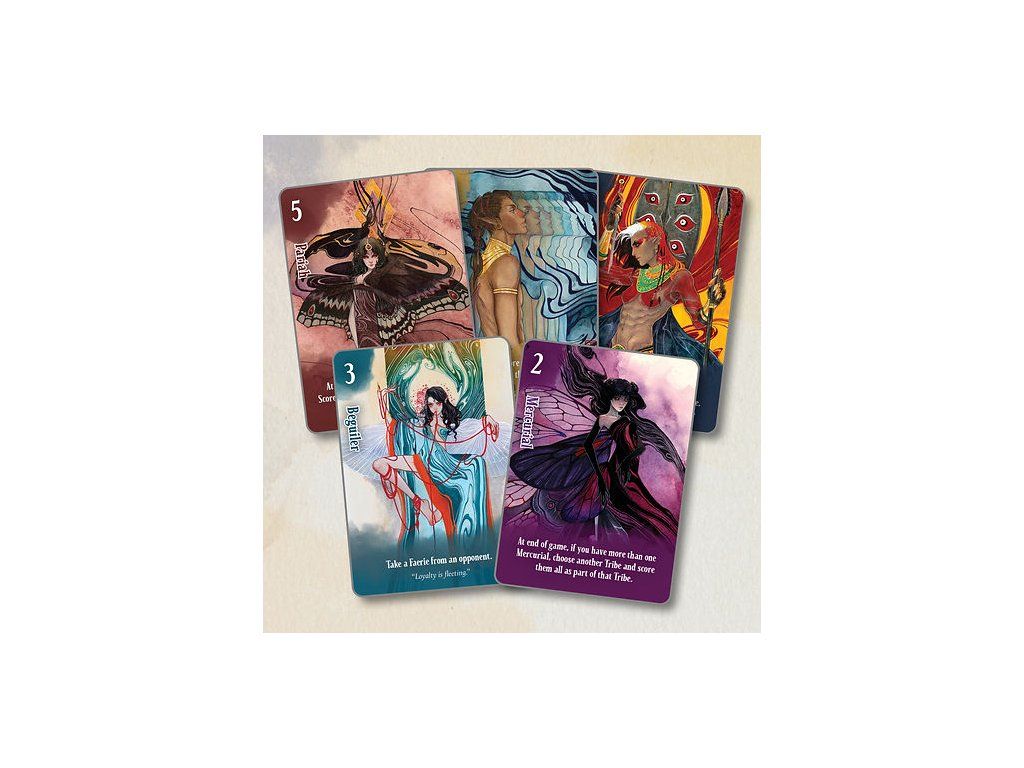 To set up before the game, players decide which six faerie tribes to use in the game from the 13 suits included in the box. They can be mixed and matched so game play varies from game to game.