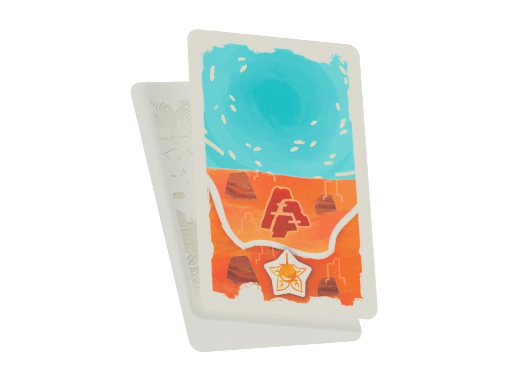 The entire system is based on landscape cards, which you use to pay for your route. When crossing an opponent's camp, you must hand over the used card to them, which creates subtle but frequent situations that change the rhythm of the game. The cards you place under your board also develop your tribe — they provide new landscapes and additional resources. The way you cross water adds another layer to the game, as you can cross an entire water zone with a single card and gain a crucial advantage.