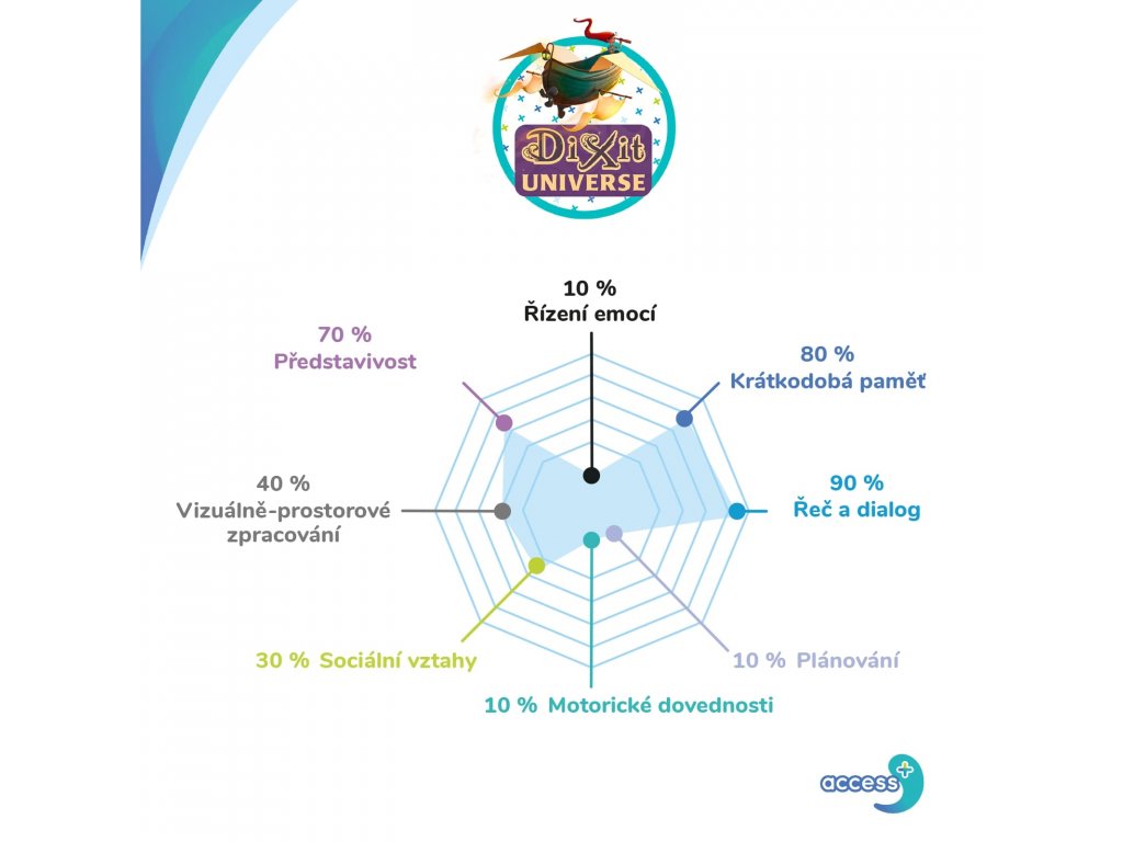 Dixit Universe Access+ particularly stimulates speech and discourse, mental imagery and short-term memory.