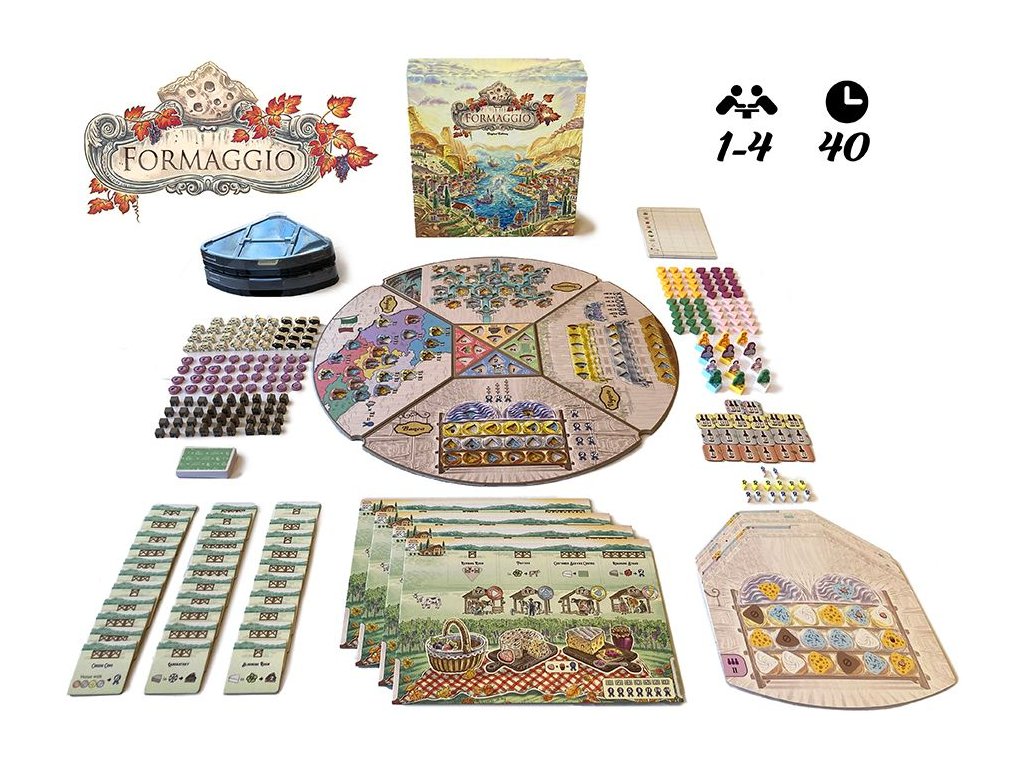 Formaggio is a standalone expansion for Fromage. With both games put together, you can combine any 4 board quadrants, and draft any combination of structure tiles for more variety and more paths to victory.