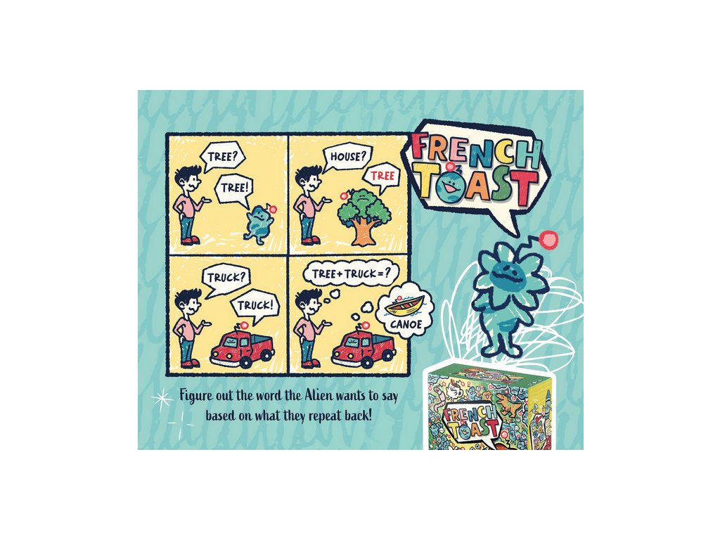 In each game of French Toast, one player acts as the Toastmaster, drawing a Secret Word that you and your friends have to guess. The catch? The Toastmaster may only communicate by repeating your guesses back to you!