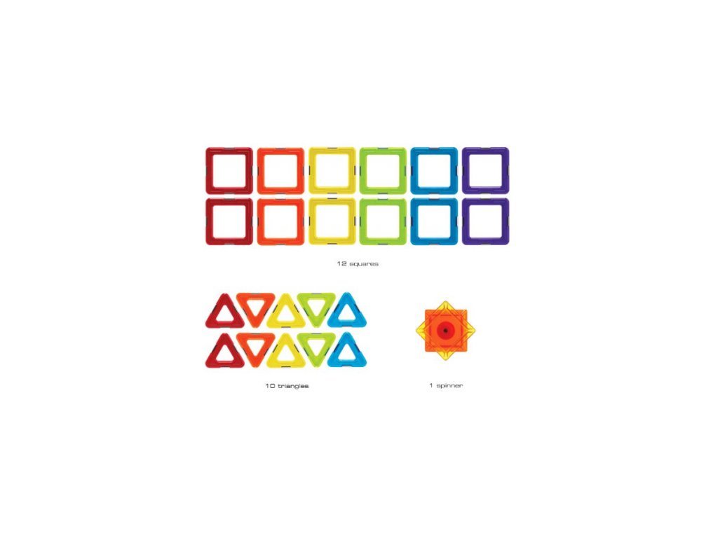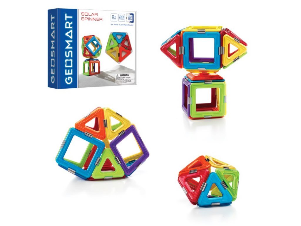 The GeoSmart magnetic building set allows children to have great fun both at home and in kindergartens. Thanks to the vibrant colors, strong magnets, and patented double safety locking system, GeoSmart offers unbeatable safety and long lifespan for children's creative play. This set includes a spinner, thanks to this piece you will discover additional gaming options of the building set. This set contains a total of 23 pieces. All GeoSmart building set kits are compatible.