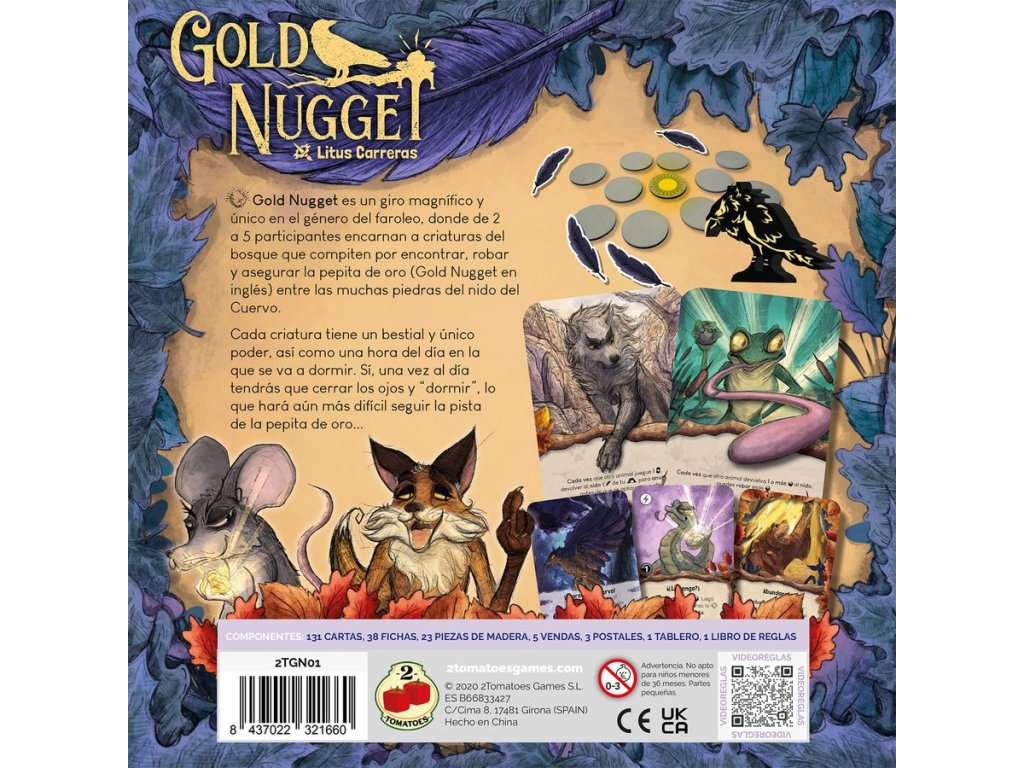 Gold Nugget is a gorgeous and unique twist on the bluffing genre where 2-5 players compete as woodland creatures trying to find, steal and secure the gold nugget from amongst the many stones in the Raven's nest.