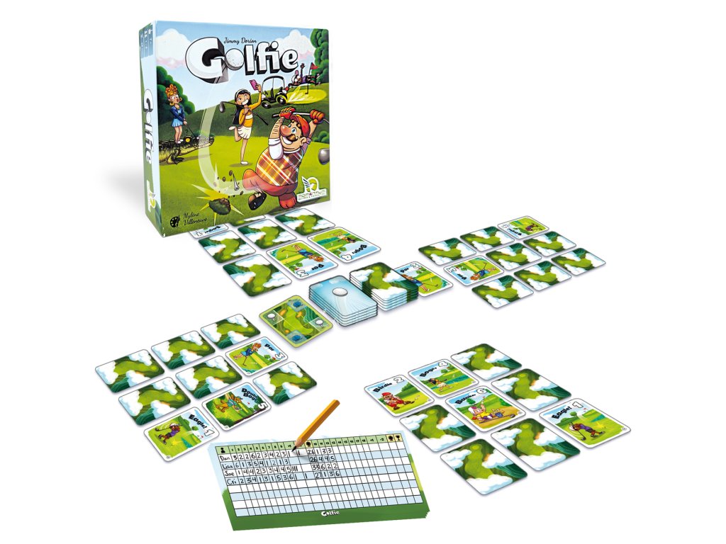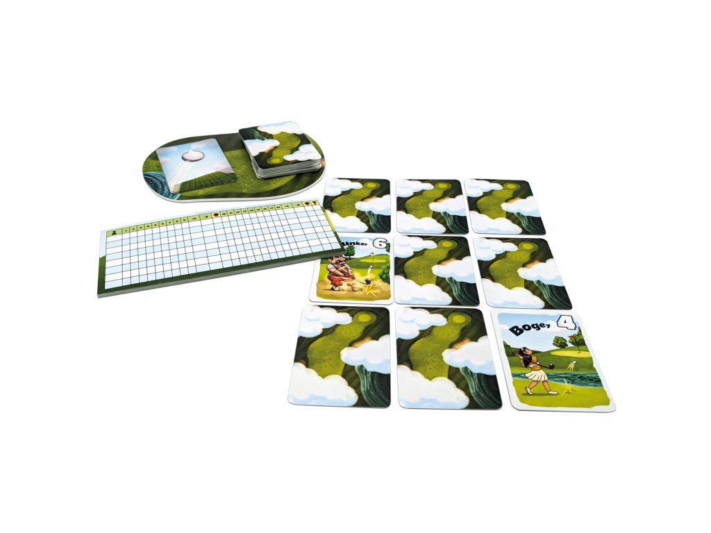 Saturday morning on the golf course: like every week, you meet up for a nice round of golf. Who will need the fewest strokes today? In this simple card game, you try to play the lowest possible card values. But most of the cards are face down: so first reveal cards and remove high values. And then move the low values to the first row. The game ends after 18 holes and whoever is ahead on the scoring sheet, wins the game.